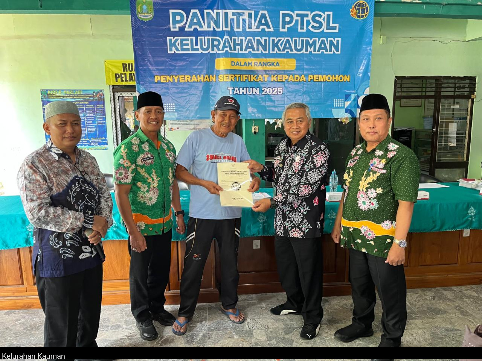 Pasuruan, Pelopornews.co.id â Pemerintah Kelurahan Kauman, Kecamatan Bangil, Kabupaten Pasuruan, Jawa Timur, bersama Badan Pertanahan Nasional (BPN) Kabupaten Pasuruan, melaksanakan kegiatan pembagian sertifikat tanah program Pendaftaran Tanah Sistematis Lengkap (PTSL) Tahun 2025 tahap pertama sebanyak 100 sertifikat, Kamis (30/10/2025) pukul 10.00 WIB.